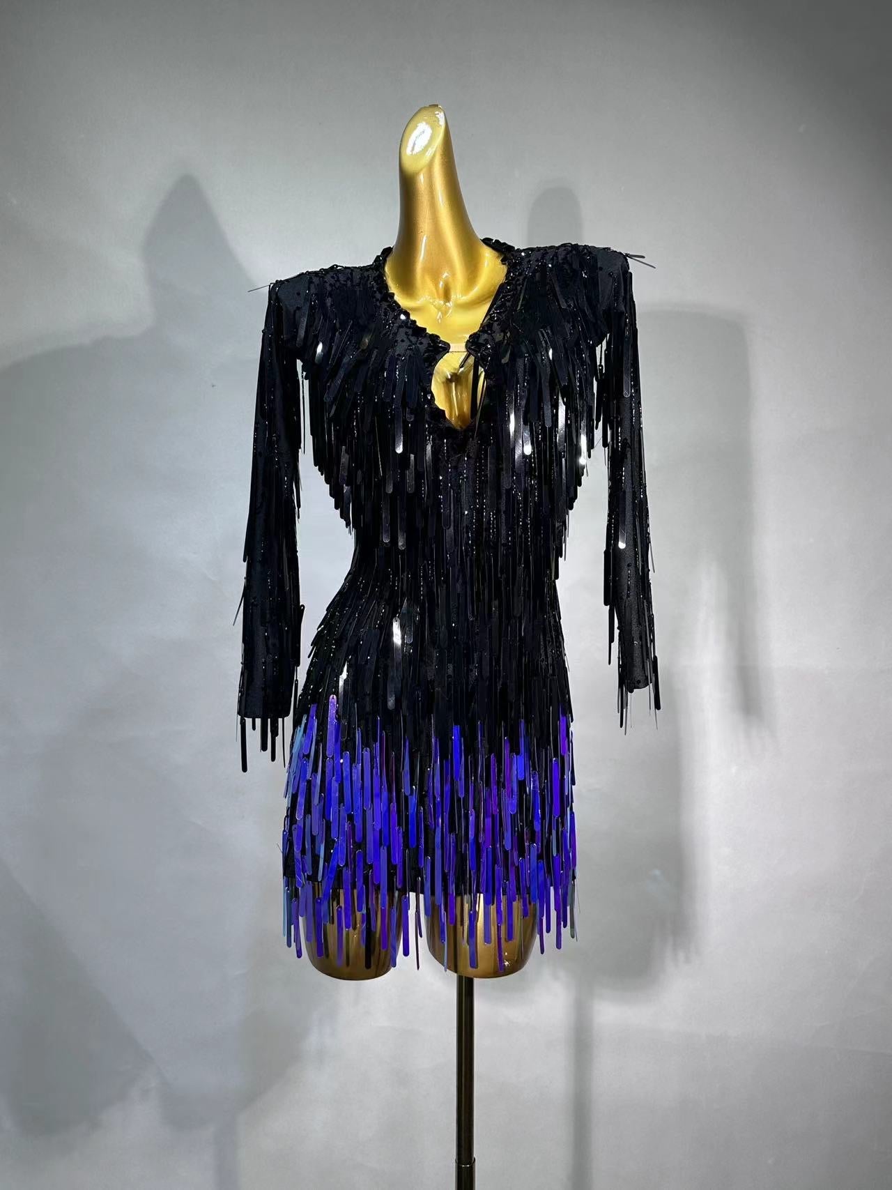 MINEJAS.L019 Black Sequins Latin Dance Costume