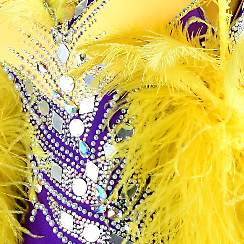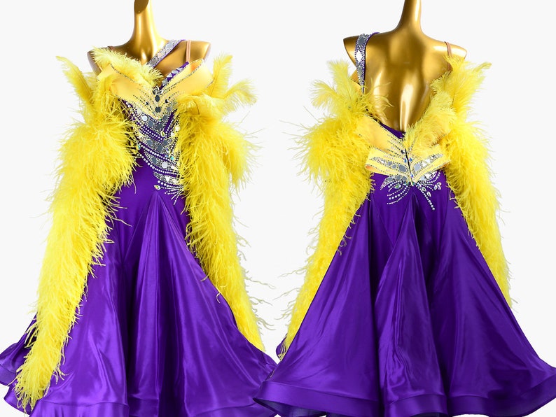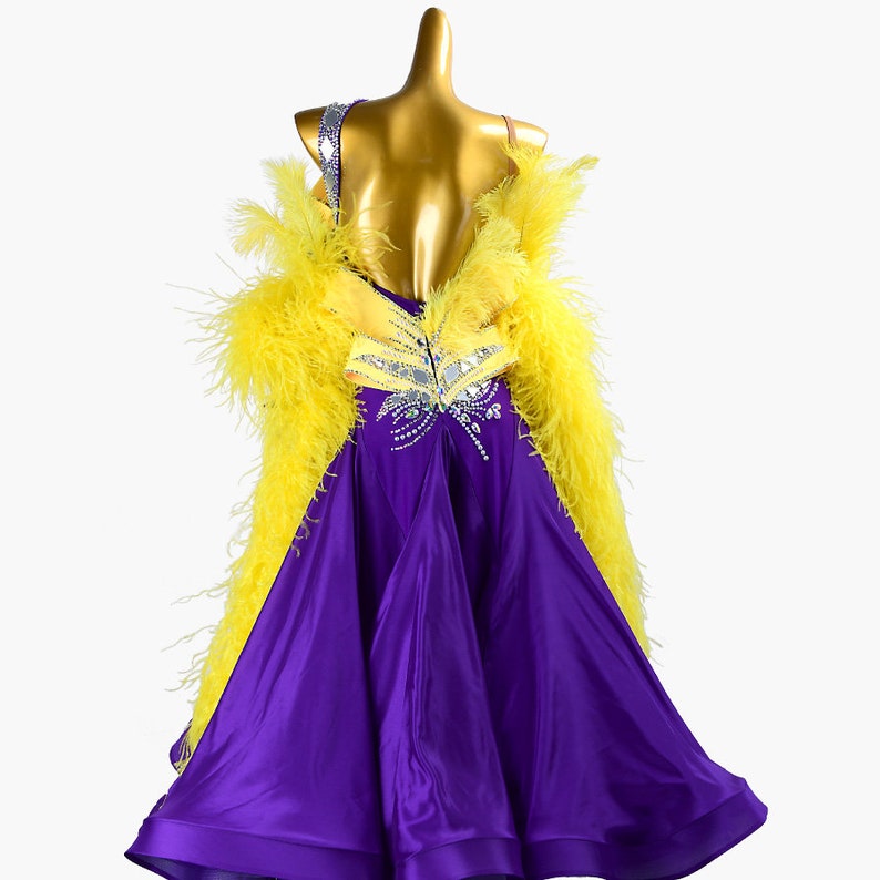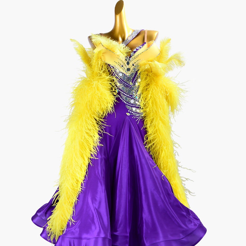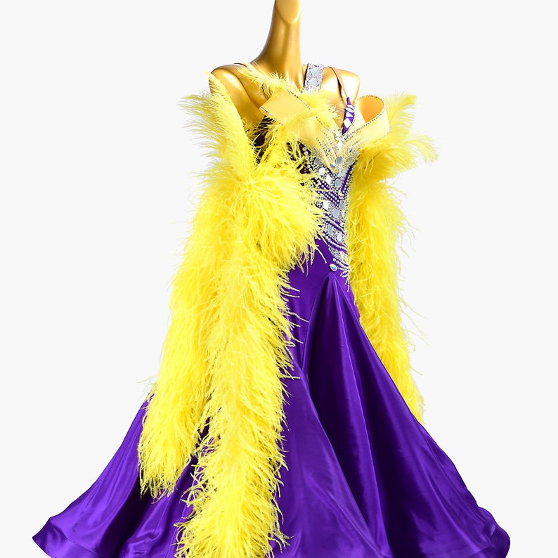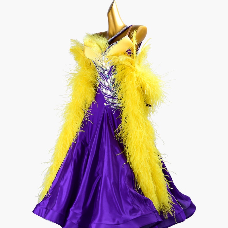 MINEJAS.PBPY004 Purple ballroom dress with Yellow ostrich feather, crystals, Sequins&satin
